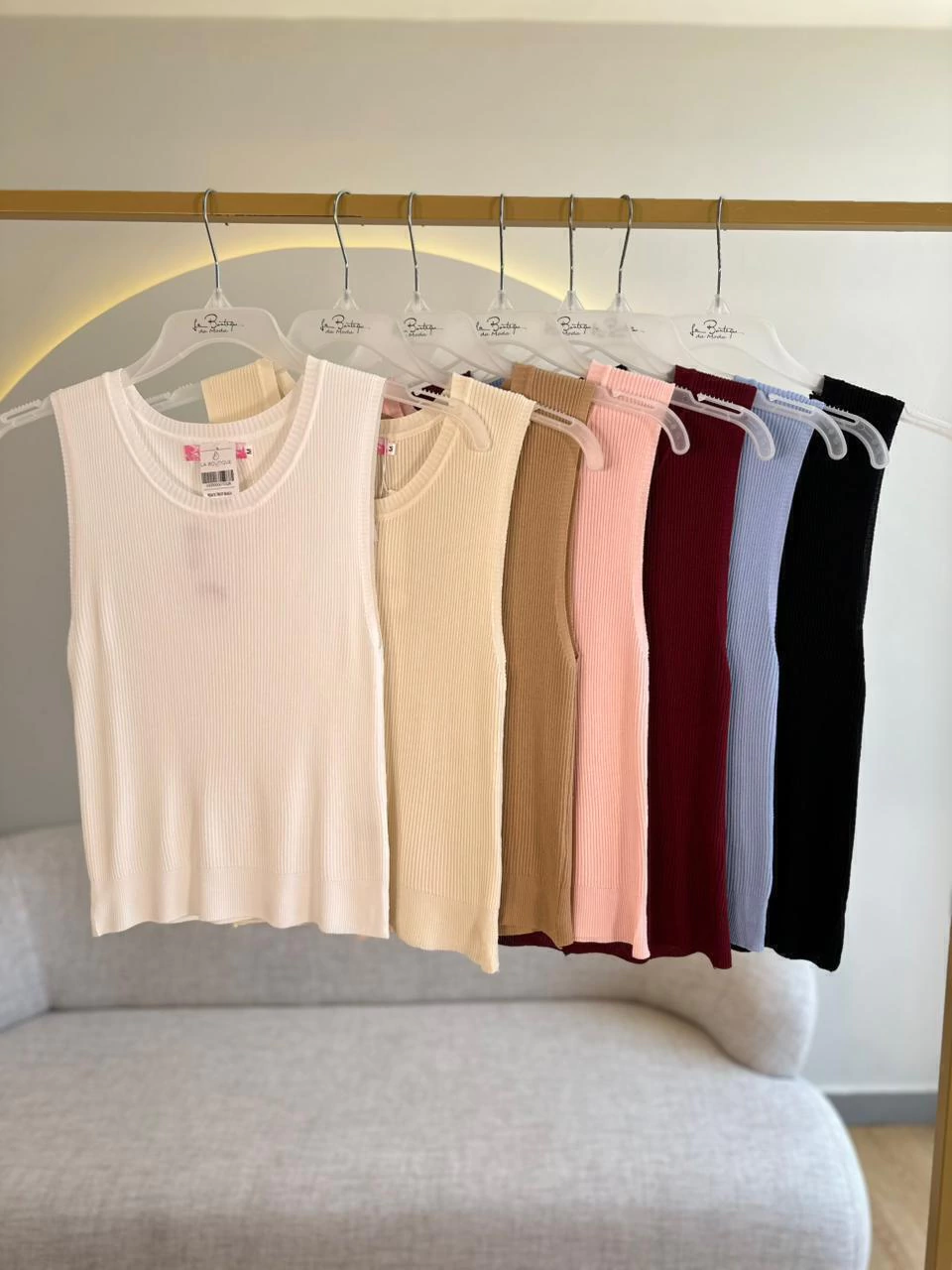 Blusa em tricot canelado, com modelagem regata e caimento leve que valoriza o corpo com conforto. O design minimalista e o toque delicado da cor tornam a peça perfeita para composições femininas e elegantes ideal para usar sozinha ou como sobreposição charmosa em dias mais fresquinhos.